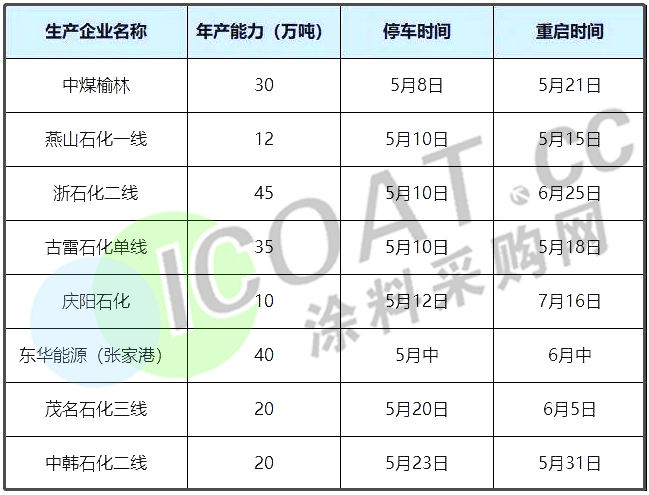 如今化工市场面临多重危机,一方面海外龙头的不可抗力将导致部分高端且不可替代性的化工品供应告急,对于涂料、化工厂的正常生产都会造成影响。另一方面,国内多家化工大厂停车检修或短暂停产,500万吨产能“蒸发”,也会使得化工市场库存低位的状况雪上加霜。