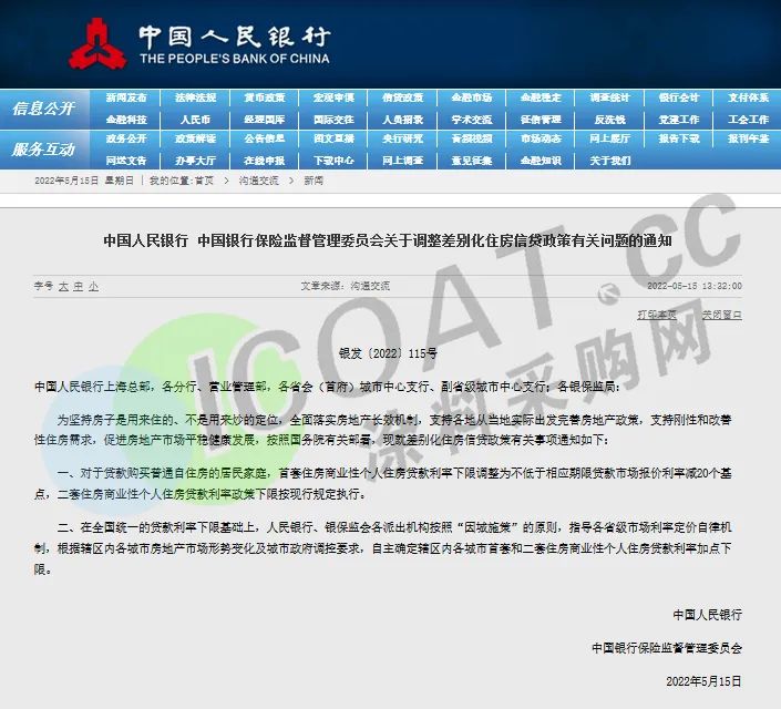 近日,楼市再传重磅利好消息!中国人民银行、中国银行保险监督管理委员会发布《关于调整差别化住房信贷政策有关问题的通知》,明确对于贷款购买普通自住房的居民家庭,首套住房商业性个人住房贷款利率下限调整为不低于相应期限贷款市场报价利率减20个基点。
