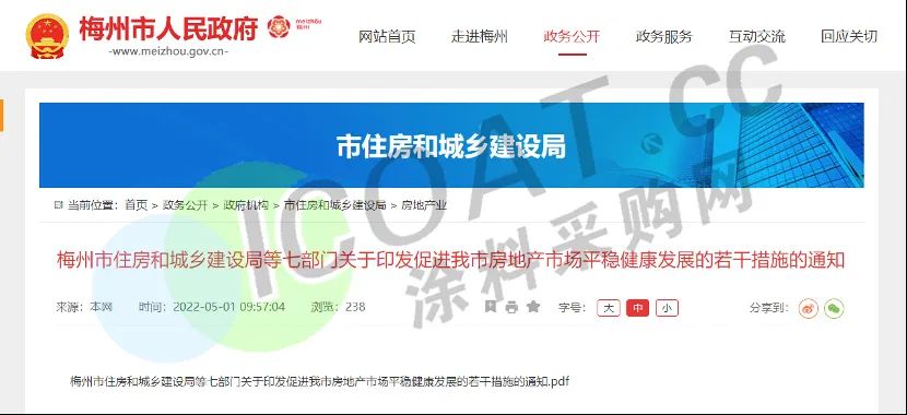 广东省梅州市住房和城乡建设局等七部门印发《关于促进我市房地产市场平稳健康发展的若干措施的通知》。《通知》提出,降低二套房公积金贷款首付比例,从当前执行的三成降至二成。