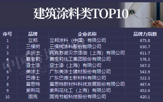 如今,中国建筑涂料产业已经历经30多年发展,国内本土品牌一直在强势崛起,以三棵树、嘉宝莉、亚士、固克、美涂士、巴德士、久诺等为代表的国内本土品牌正在建筑工程涂料领域大放异彩,而且市场份额也遥遥领先。在近期发布的“中国房地产供应商品牌力指数榜”中,立邦、三棵树、多乐士、嘉宝莉、亚士漆、美涂士、巴德士、富思特、紫荆花、固克等荣耀上榜建筑涂料TOP10。