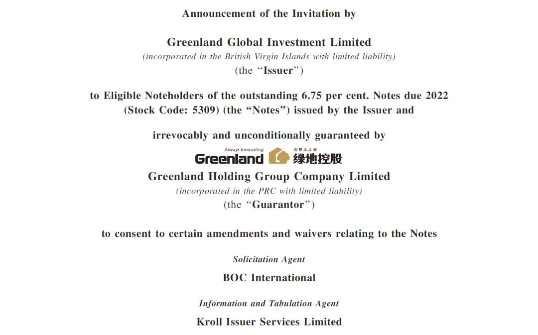 近日,绿地控股发布公告表示,拟对GRNLGR 6.75 06/25/22进行若干修订以及豁免发起同意征集,内容包括延长到期日、加入发行人在到期前赎回全部或部分票据的赎回权、先行支付原到期日未偿还本金的10%,以及取消维持票据上市状态的契约。