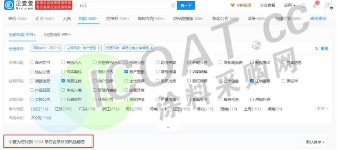 相较于涂料行业1000多家企业的倒闭注销,化工行业的状态显然更惨一些。化工行业2022年以来倒闭注销或破产重整的企业共计4761家,其中本年度成立且注销的企业共计1397家,其余3364家成立时间长短不等,且目前正在进行注销或已经倒闭。