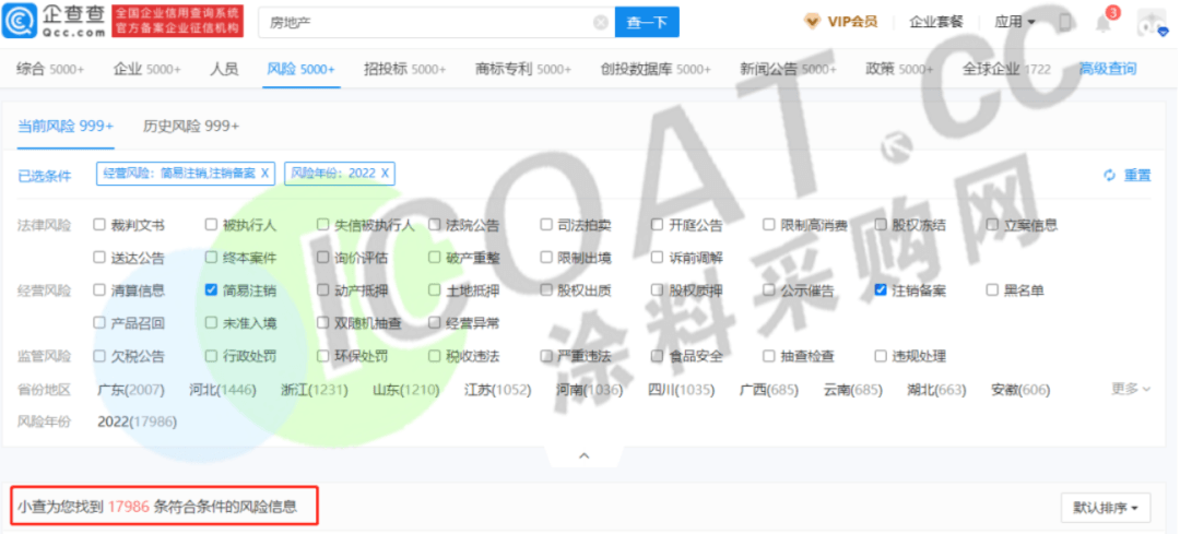 房地产行业,2022年以来,正在简易注销、注销备案或是破产重整状态的企业为17986家。