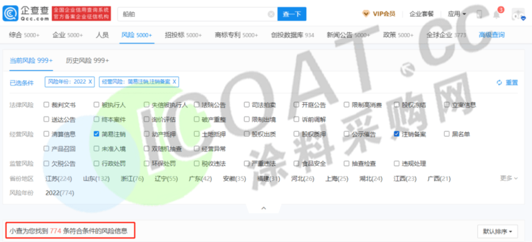 船舶行业,2022年以来,正在简易注销、注销备案或是破产重整状态的企业为744家。