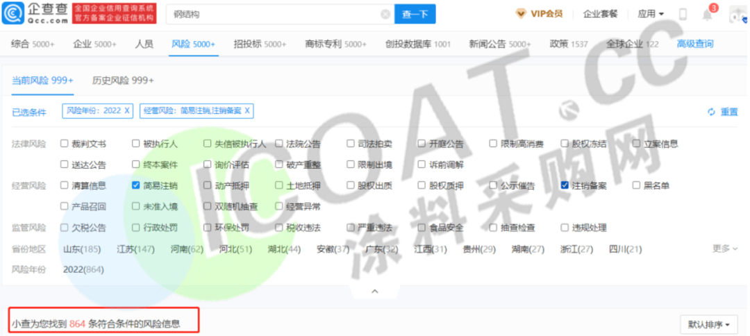 钢结构行业,2022年以来,正在简易注销、注销备案或是破产重整状态的企业为864家。