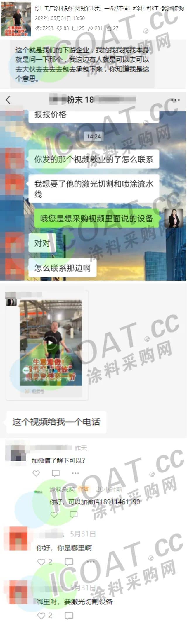 生意“凉”了,企业“黄”了,设备“卖”了,人员“退”了,听起来好似一片惨淡,但评论区却呈现另一派火爆景象。“厂子在哪里,我要激光设备”、“卖了吗?我想要”、“能联系吗,低价我收”……7000余人观看,近300人转发,各种抢着收购二手设备的人四面八方赶来洽谈。
