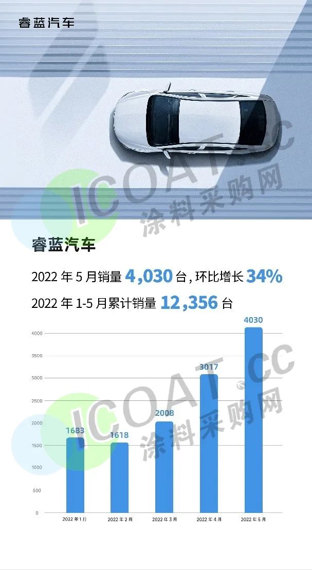 睿蓝汽车:5月取得了4030台的销量成绩,环比增长超30%,月销量再度突破历史记录。今年1-5月,睿蓝汽车不仅连续刷新月销量历史最好成绩,累计销量更是已经破万,达到了12356台。
