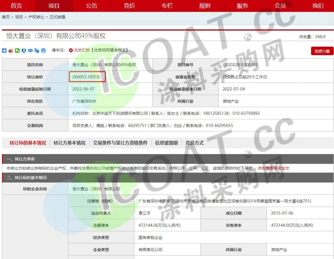 房地产行业风云变幻,两家世界500强企业终于走向了“分手”。据北京产权交易所披露,中国铁建股份有限公司子公司中国铁建投资集团正挂牌出售恒大置业(深圳)有限公司49%股权,挂牌底价26.6亿元。