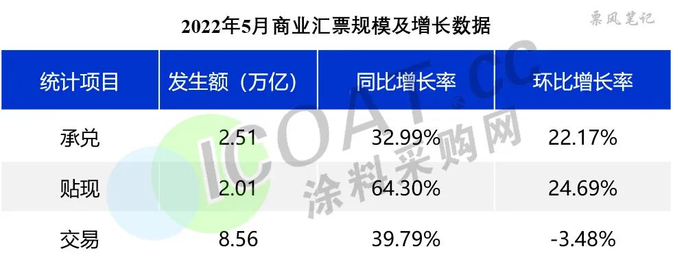 自3月疫情爆发以来,经济下行压力显著加大同时市场主体预期转弱,企业投资意愿减弱,房地产销售低迷,信贷需求不振,银行信贷投放青黄不接,对票据的需求持续保持旺盛。今年5月,票据市场承兑发生额、贴现发生额、交易量分别为2.51、2.01、8.56万亿元,贴现发生额同比增速显著高于承兑发生额,环比增速略高于承兑发生额。