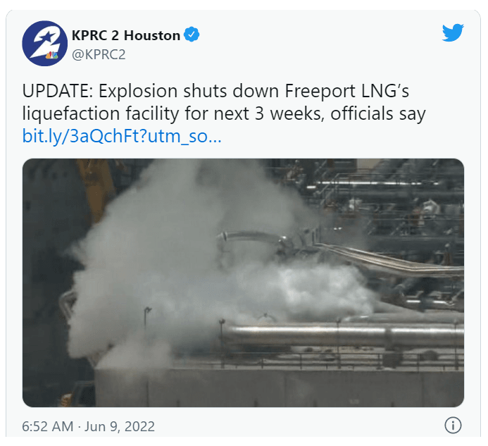 自由港终端作为美国最大的液化天然气加工和出口设施之一,每天接收约20亿立方英尺的天然气,约占美国LNG出口能力的16%,终端设施对管道输送来的天然气进行液化之后,再装船出口。该自由港的客户包括欧洲的英国石油、道达尔能源,日本的东京电力、大阪燃气和韩国的SKE&S。自由港出口终端历来将大部分货物运往日本和韩国,但停工将影响欧洲,这给本就紧张的全球天然气供应带来进一步压力。