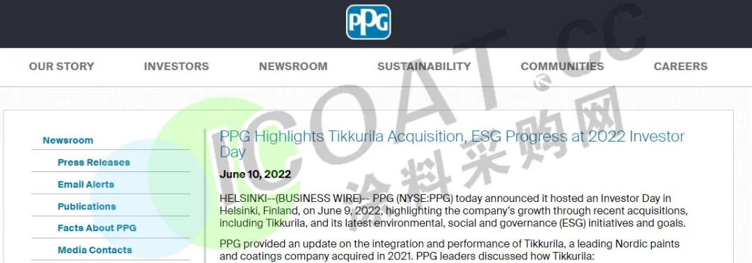 近日,PPG举办投资者日并表示,一直以来收购都是PPG长期发展战略的关键,也是持续创造价值的关键。PPG首席运营官Tim Knavish称,“我们对最近5次收购的整合速度感到满意。自从完成收购后,我们发现了进一步的发展机会,以推动我们的总协同目标,将我们的总协同目标提高到1.5亿美元——比最初的目标增加了15%。”