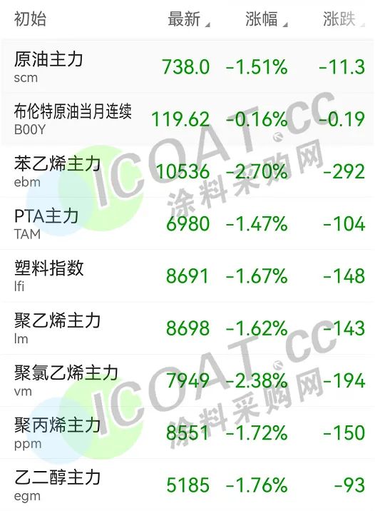 据涂料采购网了解,“市场低迷”的情况在当下并不鲜见,由于亏损或没有订单而封盘惜售、暂不报价的企业也不在少数,且涉及了PVC、MDI、醋酸乙酯、纯碱、顺酐、正丁醇等多种化工品。