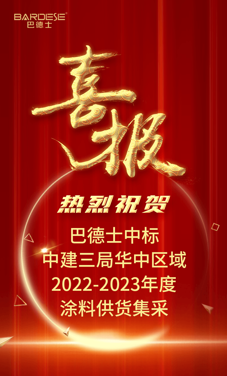 近日,国内涂料龙头企业巴德士从众多竞标企业中脱颖而出,成功中标中建三局华中区域(江西省、河南省、湖北省、湖南省)2022-2023年度涂料供货集采。再度中标中建三局涂料集采,是中建三局对巴德士的认可,也意味着,这家涂料企业在持续开拓客户中再进一步。