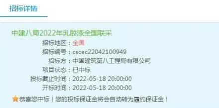 巴德士成功中标2022年中建八局(全国区域)乳胶漆联采项目。