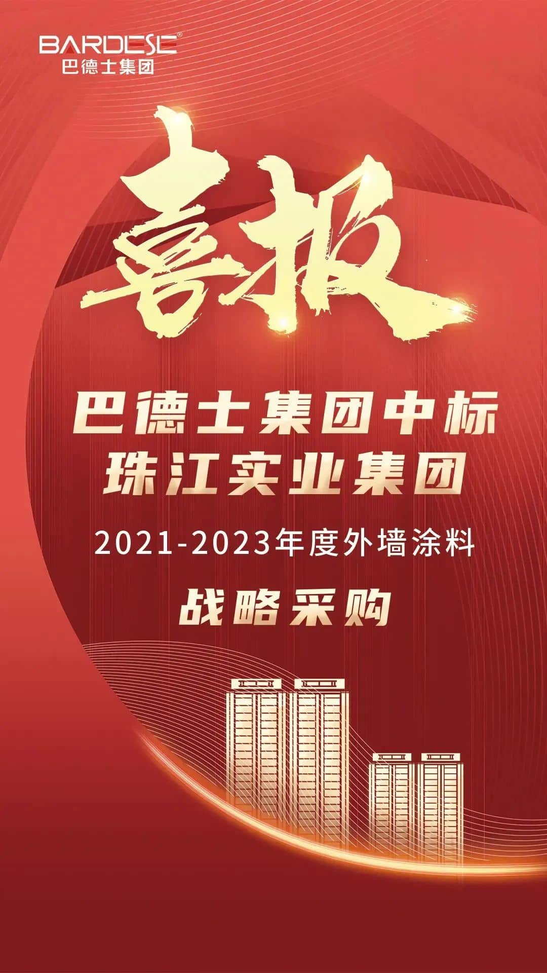 巴德士成功中标珠江实业集团2021-2023年度外墙涂料供货及施工战略采购。