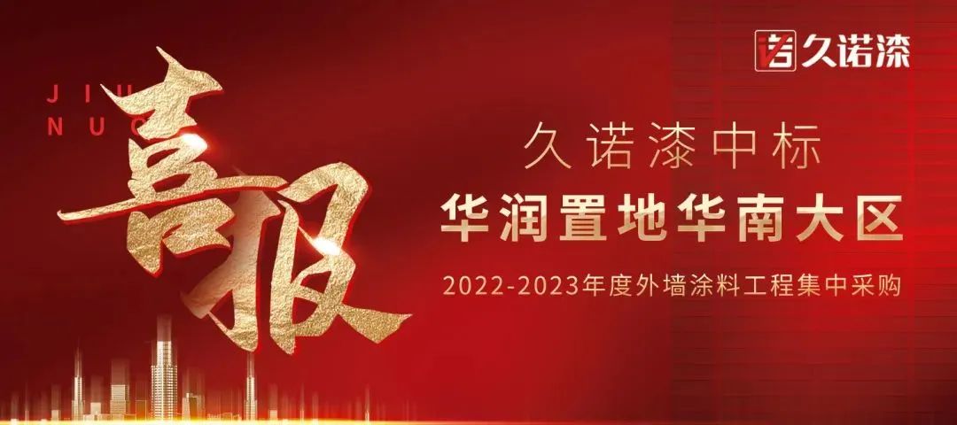 久诺中标华润置地华南大区2022-2023年度外墙涂料工程集中采购。