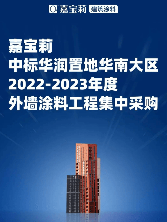 嘉宝莉中标华润置地华南大区2022-2023年度外墙涂料工程集中采购。