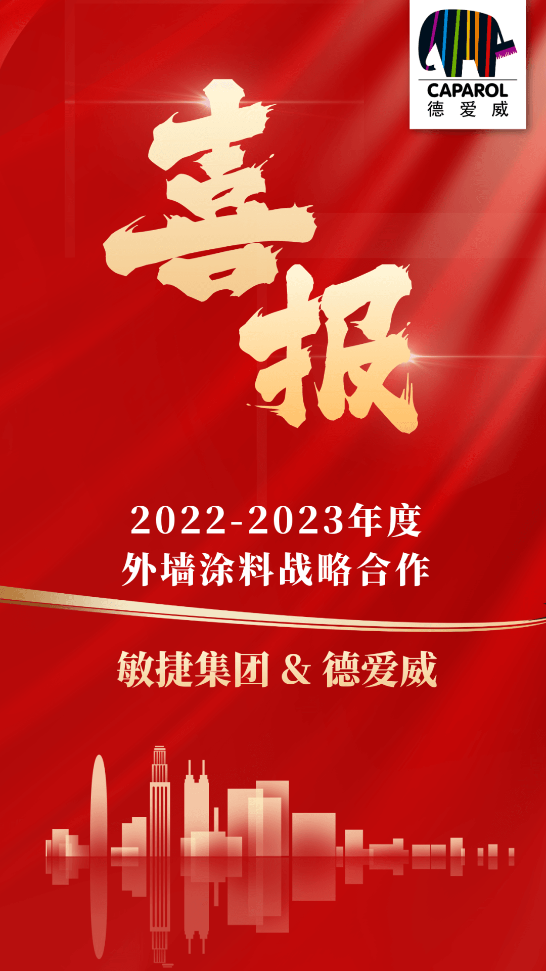 德爱威中标敏捷集团2022-2023年度外墙涂料战略合作,双方将通过此战略合作,建立长期稳固的合作方式与合作模式。