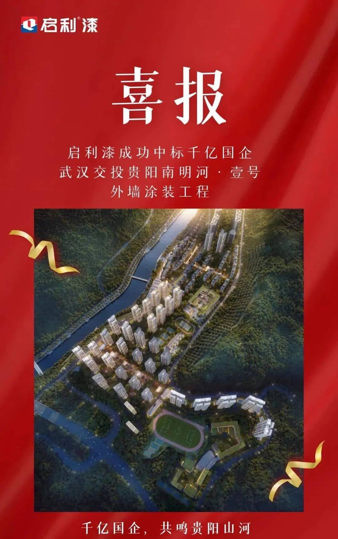 启利漆成功携手绿地控股旗下贵州建工集团助力千亿国企武汉交投贵阳南明河·壹号外墙涂装工程,外墙立面采用启利质感涂料系列产品,总建筑面积超110万方。