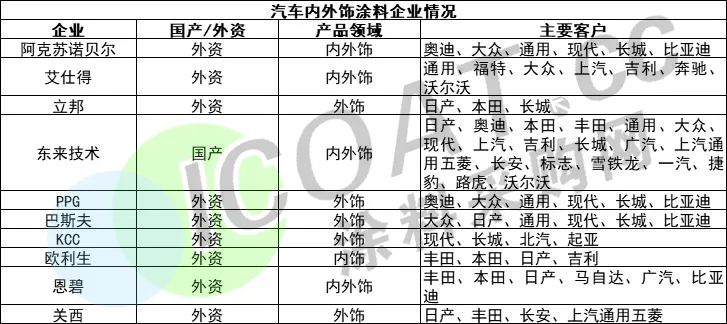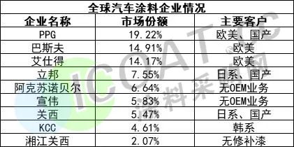 而在汽车行业,涂料采购网查询了部分汽车品牌官网信息,了解到巴斯夫、艾仕得、东来涂料、PPG、KCC、欧利生、关西等多个国内外涂料品牌为汽车行业提供涂料,有些甚至是知名汽车品牌的长期供应商。