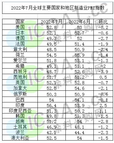 海外多个经济发达体面临增长动能放缓的风险,经济濒临回落,市场风险加大,对于原材料及部分产品的采购环节必然会受到影响。这种消费降价无疑也影响到了全球制造业发展的进程。数据显示,7月全球制造业PMI指数为51.1,较上月下降了1.1个百分点。多数国家读数连续多月下降,经济衰退风险已经近在眼前。