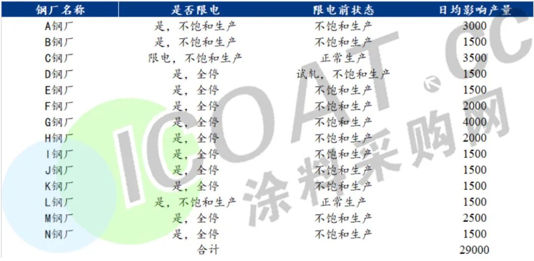四川电炉钢厂全部接到通知,11家电炉钢铁企业已经开始全部停产,响应让电于民的政策要求。川内短流程钢厂基本停产,长流程钢厂亦错峰生产,停产比例达71%。此次用电安排方案预计对川内钢厂生产影响时间为一周左右,预计影响总产量21万吨。