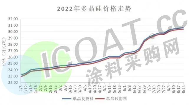 多晶硅报价295333.34元/吨,较年初上涨119333.34元/吨,涨幅67.8%;