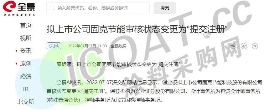 固克节能的IPO申请于2020年10月29日受理,同年11月23日“已问询”,并于2021年8月4日过会,2021年10月29日提交注册。2022年3月31日,创业板IPO审核状态变更为“中止”,原因为“IPO注册申请文件中记载的财务资料已过有效期,需要补充提交。”