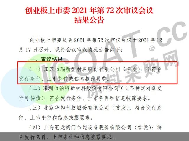 主要从事功能性涂料的研发、生产和销售的扬瑞新材于2017年11月30日向证监会提交首次公开发行股票并在创业板上市的行政许可申请材料,并于2018年7月26日披露了招股说明书,2019年7月18日,当日IPO大考的扬瑞新材遗憾被否。2020年7月15日扬瑞新材的创业板IPO获深交所受理,并于同年9月6日进入问询阶段。2021年12月17日晚间,扬瑞新材首发申请被否。