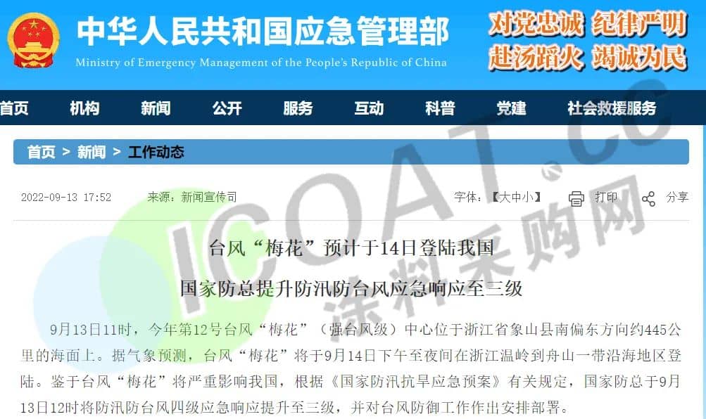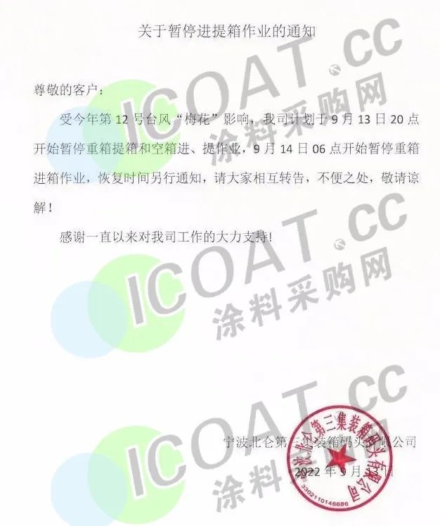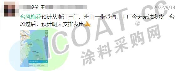 而随着“梅花”逐渐北上,华北地区的化工企业可能也会受到影响,特别是沿江、沿河、沿湖、沿海及易受台风、暴雨、风暴潮、洪水等威胁的化工和危化品企业,务必要落实防风、防雨、防汛、防潮措施,严防事故发生。涂料采购网提醒大家,做好安全防护工作,合理储备物流,与客户做好沟通,最大程度的保障物资和人员安全。