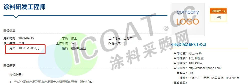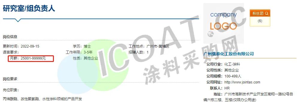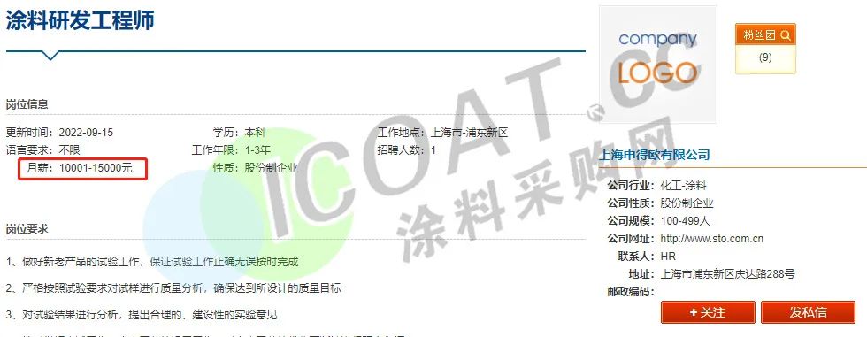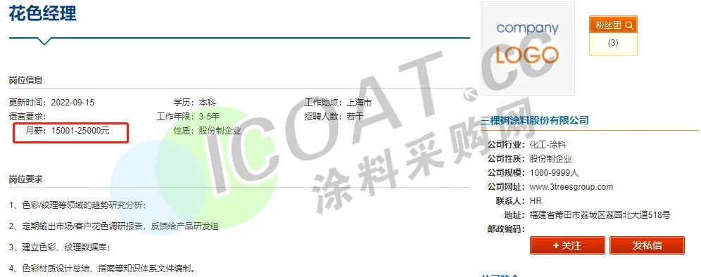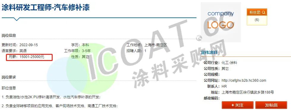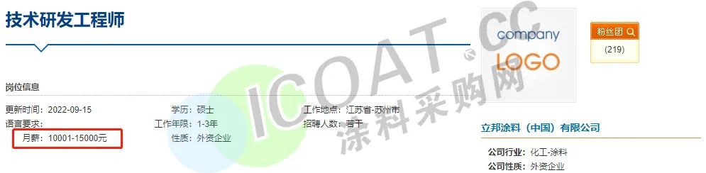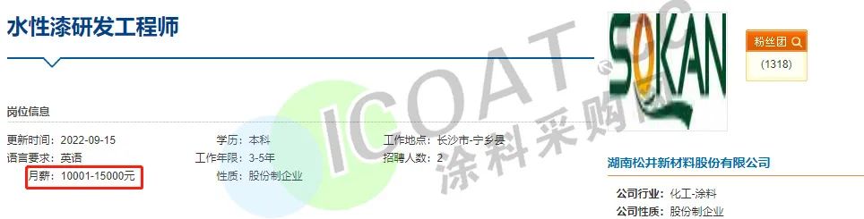 这也就解释了为何多家涂料企业高薪聘请技术人才,“防水茅”东方雨虹甚至抛出了“年薪600万”的橄榄枝招聘生产运营总监。三棵树、申得欧、华秦科技、中远关西、艾仕得、集泰股份、宣伟涂料、立邦、松井股份等多家涂料行业知名企业也在高薪聘请技术人员,薪资待遇在15-25K甚至更高。