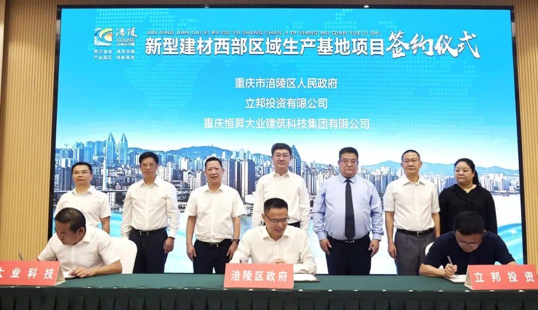 近日,重庆市涪陵区政府与立邦投资有限公司、重庆恒昇大业建筑科技集团签订新型建材西部区域生产基地项目合作协议。该生产基地项目坐落于涪陵临港经济区新石组团,总投资10亿元,预计建设周期14个月。项目达产后,将年产500万吨新型环保特种干粉砂浆系列产品,预计年产值达30亿元。