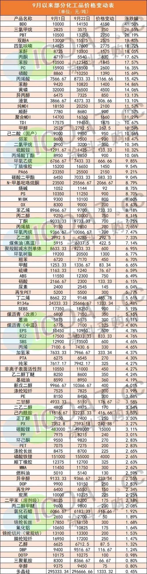 日涨1000元/吨!100多种化工品借力“金九”涨价