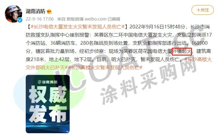 业内人士表示,湖南电信大厦外墙起火,在短时间内几十层楼体全部燃烧起来,这说明保温板不具备阻燃性。