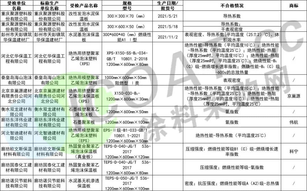 除此之外,保温材料行业以次充好、质量不合格的情况也是切实存在的。据全国多地市场监管部门数据,今年以来保温材料市场质量不合格的情况较多,且不合格情况涉及导热系数、绝热性能、压缩强度、燃烧性能登记、密度等等。
