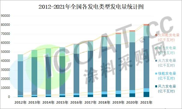 1、以煤炭作为主燃料的火力发电量依然占据首位,总量攀升至57702.7亿千瓦时,约为我国全社会发电量的71.13%;
