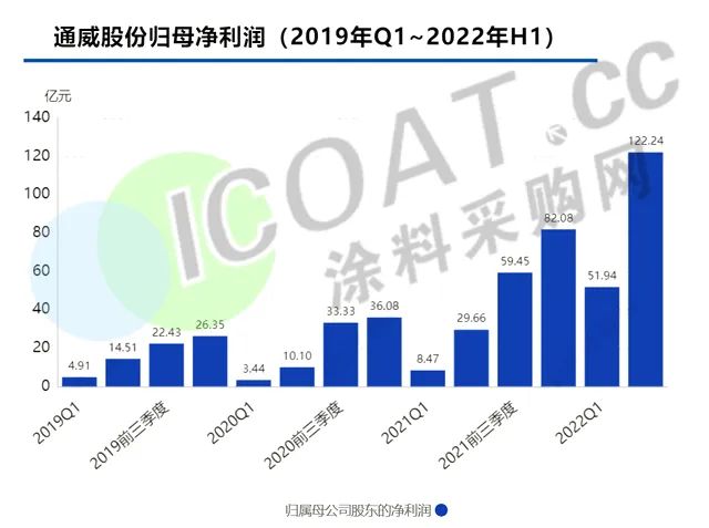 而这些产品的价格飙涨无疑也拉动了相关生产商的股价和业绩数据。通威股份在7月5日创下了67.75元的历史最高收盘价,且预计2022年前三季度实现归属于上市公司股东的净利润214亿元-218亿元,同比增长259.98%-266.71%;高纯晶硅产品市场需求持续旺盛,价格同比上涨,叠加公司新产能快速爬坡达产,实现量利大幅提升。合盛硅业从2021年初的32元(前复权)附近,仅用九个半月就突破了240元,涨幅超过600%。