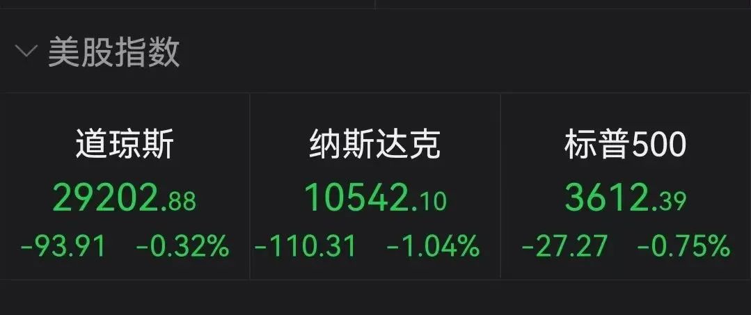 当地时间10月10日,美股三大股指高开后再度走低,均连续4个交易日下跌。截至收盘,美股道指跌0.32%,报29202.88点;纳指跌1.04%,报10542.10点;标普500指数跌0.75%,报3612.39点。