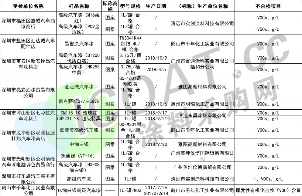数据显示,2021年,中国汽车产量达2608.2万辆,同比增长3.40%,销量达2627.5万辆,同比增长3.81%。庞大的汽车市场,无疑也带来了巨大的汽车漆需求,让更多的企业看到了抢滩的必要性。看起来似乎是一片红海,但在汽车涂料市场中,却存在这众多“不和谐的音律”——质量不合格。据涂料采购网了解,近几年各地市场监管部门屡屡曝出汽车漆产品不合格的案例,多种参数和有害物质超标,让不少人感到胆战心惊。