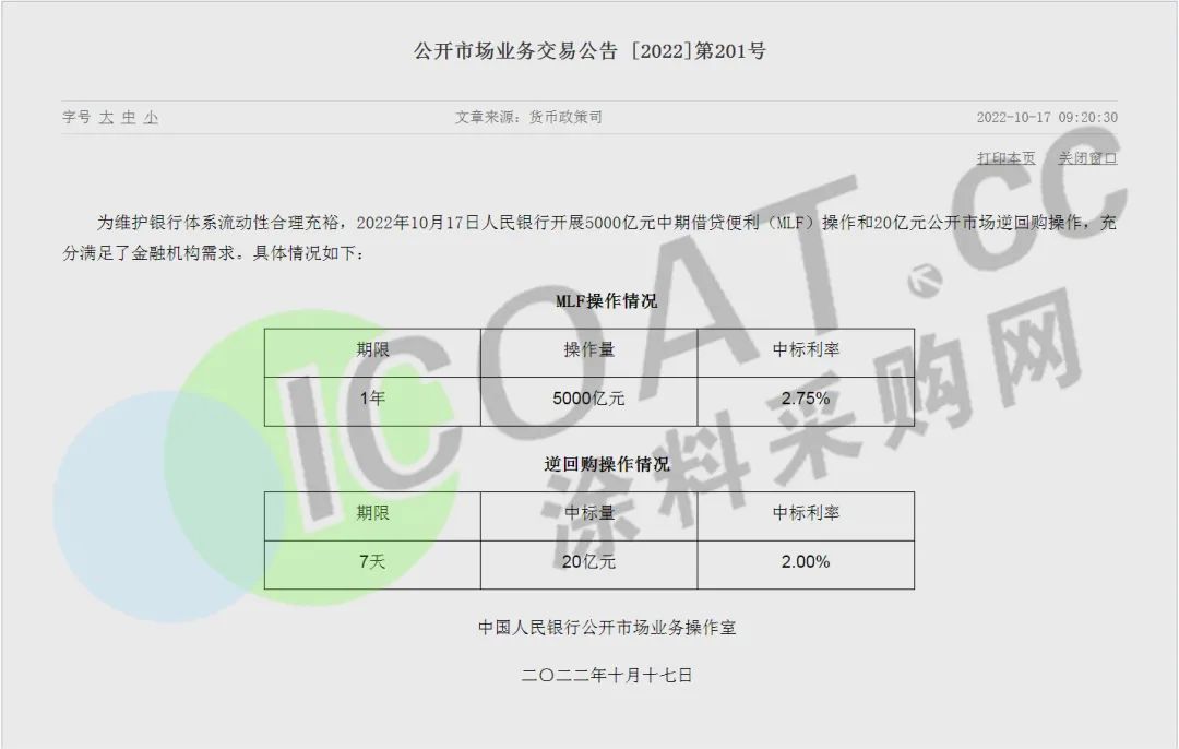 今年以来,政策层面高度聚焦稳增长,金融管理部门年内两次召开部分金融机构货币信贷形势分析座谈会,要求加大信贷投放力度。为维护银行体系流动性合理充裕,人民银行开展5000亿元中期借贷便利(MLF)操作和20亿元公开市场逆回购操作,充分满足了金融机构需求。中标利率均持平,分别为2.75%、2.0%,期限分别为1年、7天。