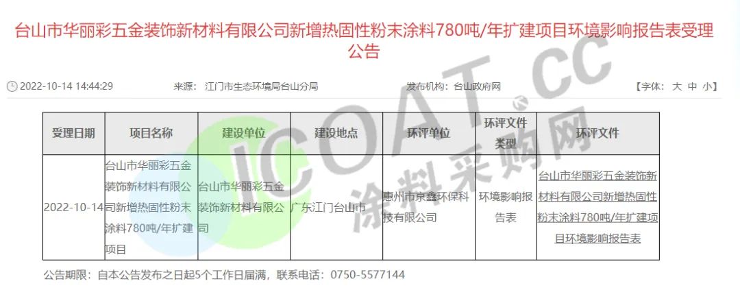台山市华丽彩五金装饰新材料有限公司:新增热固性伟德客户端官网780吨/年扩建项目,总投资992万元。