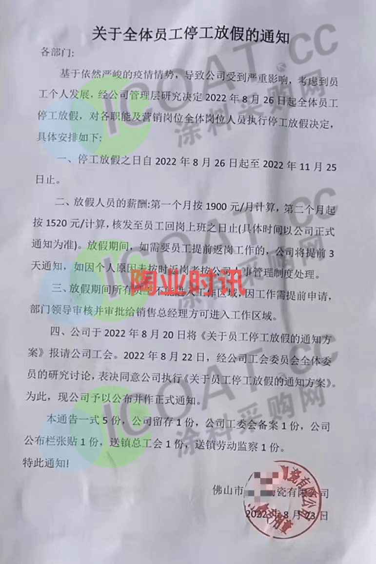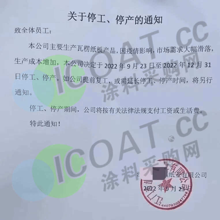 珠三角一工厂宣布自9月23日起至12月31日至停工停产。