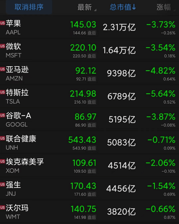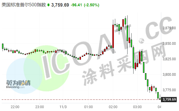 标普500指数11个板块“全军覆没”均跌超1%。可选消费板块收跌3.7%,信息技术/科技板块跌3.47%,电信板块跌超3%,房地产、原材料、能源板块至多收跌逾2.6%,公用事业板块跌超1%。