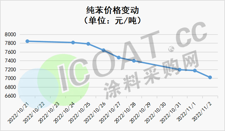 纯苯从7842.5元/吨跌至7020元/吨,报价8连跌,累计下跌822.5元/吨,跌幅10.49%。