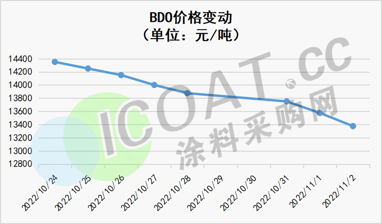 BDO从14350元/吨跌至13375元/吨,报价7连跌,累计下跌975元/吨,跌幅6.79%。