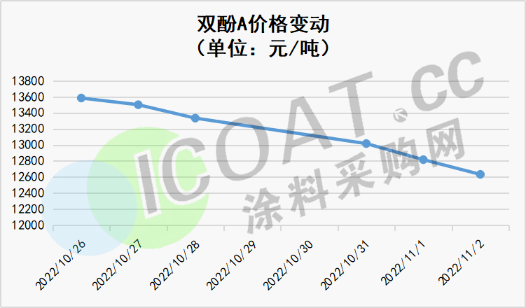 双酚A从13583.33元/吨跌至12633.33元/吨,报价5连跌,累计下跌950元/吨,跌幅6.99%。
