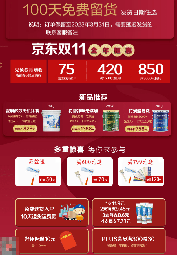 在当前的双十一电商购物节中,晨阳水漆的官方旗舰店也参与了此次全年大促,不仅给消费者带来了满额送礼、免费留货、送货入户、好评返现等服务,还推出了几款新品,并打折进行推广放送,似乎与濒临破产、债权难偿的并不是同一个晨阳水漆。