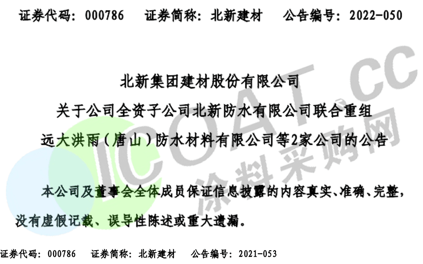 2022年4月30日,北新建材全资子公司北新防水以52,784.84万元的价格受让唐山远大洪雨63.28%股权,以7,214.49万元的价格受让宿州远大洪雨70%股权。交易完成后,北新防水将分别持有唐山远大洪雨和宿州远大洪雨70%的股权。