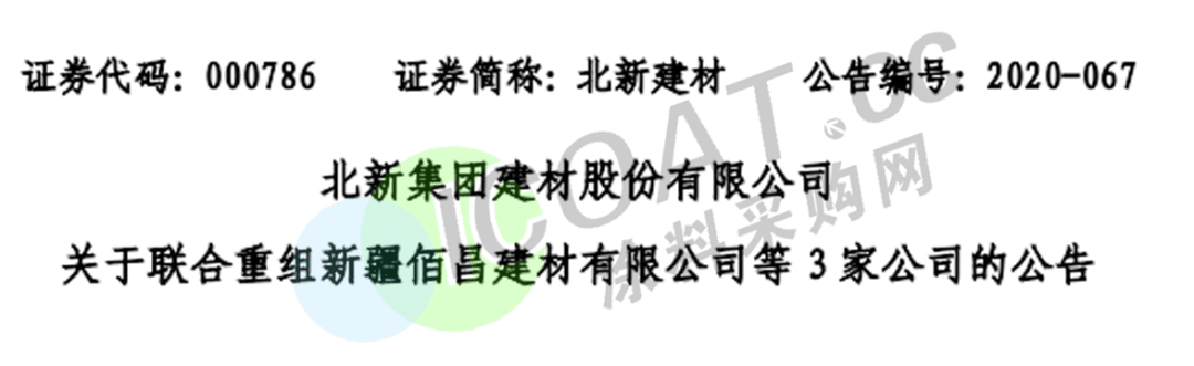 2020年12月31日,北新建材拟以3,192.74万元的价格受让中新贸易持有的佰昌建材70%的股权,拟以2,806.88万元的价格受让中新贸易持有的北建建材70%的股权,拟以7,993.38万元的价格受让中新贸易持有的新疆北泰建材有限公司70%的股权。