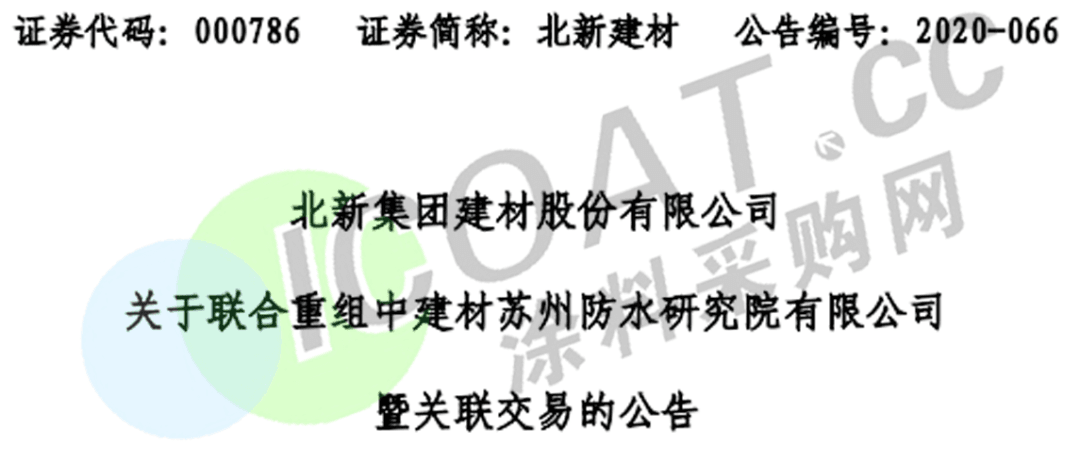 2020年12月31日,北新建材以6,921.32万元的价格受让中建材苏州防水研究院有限公司100%股权。